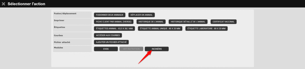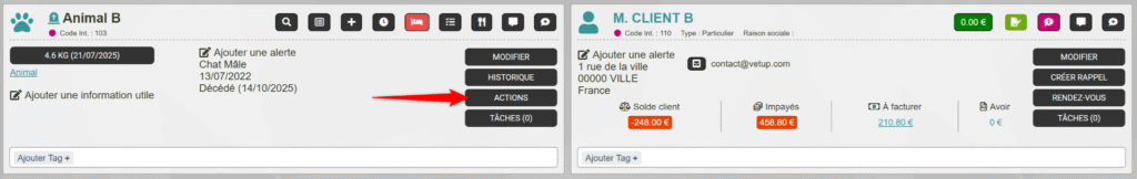 - Actions possibles depuis la fiche d'un animal