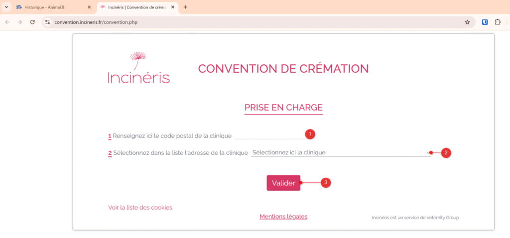 Une liaison est disponible entre Vetup et le portail d’Esthima, permettant de générer automatiquement les conventions de crémation préremplies avec les informations de la clinique et de l’animal.
