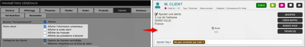 Vous pouvez choisir d’afficher ou non chacun de ces montants via PARAMÈTRES > Paramètres généraux > Onglet Clients.
