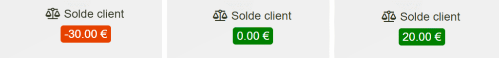 - Solde égal à 0 (en vert) → le client est à l’équilibre.