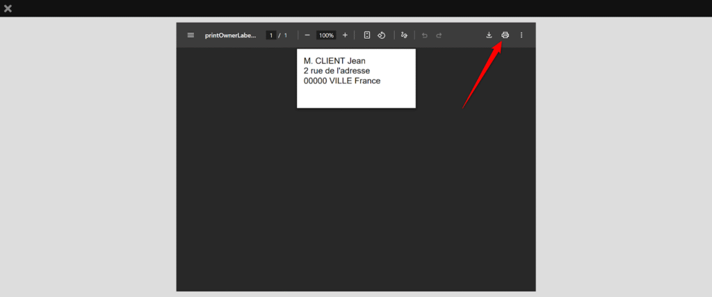 Les dimensions de l’étiquette dépendront des paramètres que vous avez définis dans les réglages précédents. L’impression se fait via l’icône dédiée.