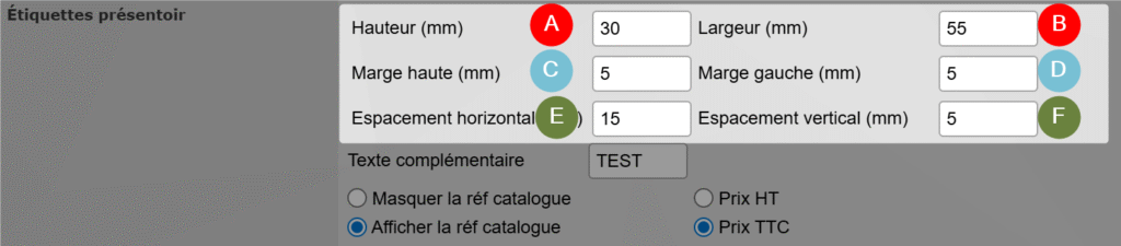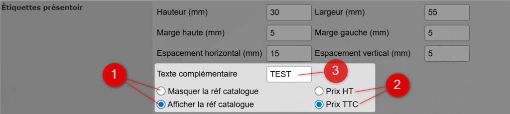 Vous pouvez également paramétrer les informations qui apparaîtront sur chaque étiquette produit.