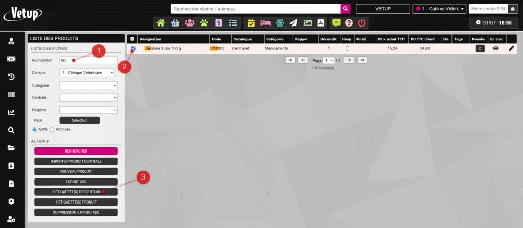 Une fois tous vos produits sélectionnés, cliquez sur le bouton X ÉTIQUETTE(S) PRÉSENTOIR (X correspondant au nombre de produits différents sélectionnés).