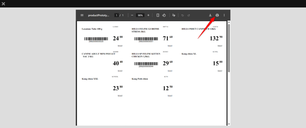 Un fichier PDF est alors généré. Vous pouvez l’imprimer en cliquant sur l’icône dédiée.