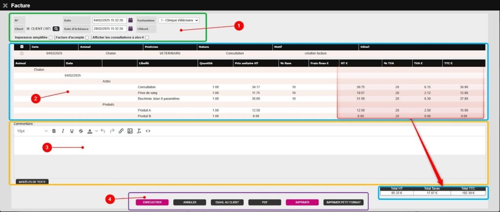 - Créer une facture groupée pour la visite de plusieurs animaux d'un même propriétaire