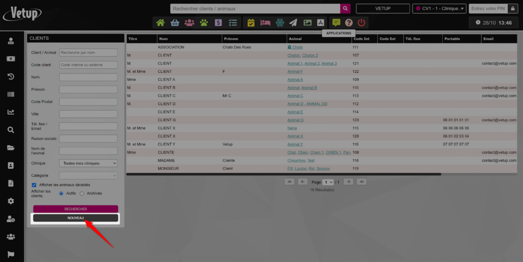 Cliquez sur Nouveau afin de créer un nouveau client dans votre base.
