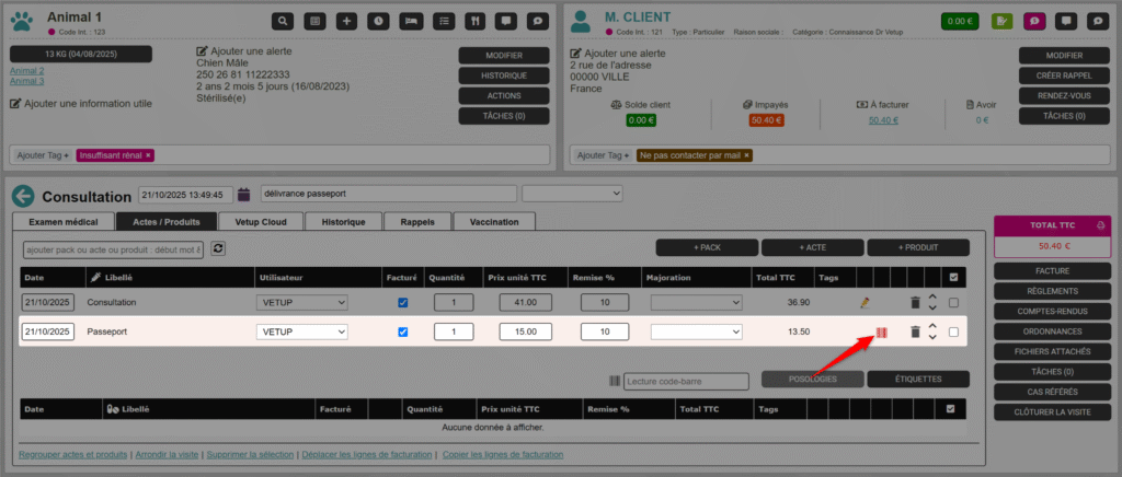 - Créer une facture groupée pour la visite de plusieurs animaux d'un même propriétaire