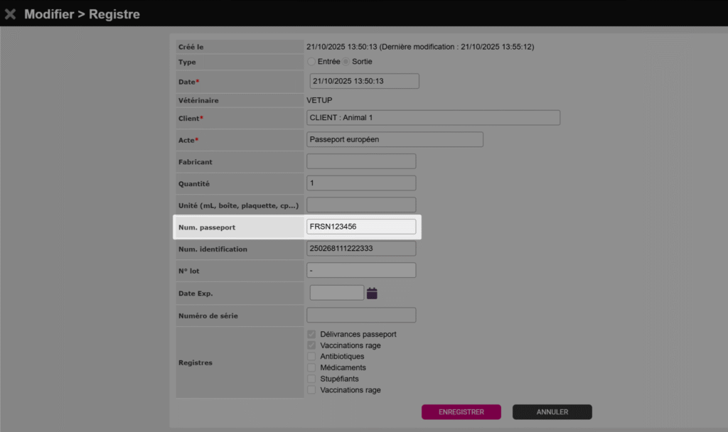 Sur Vetup, vous pouvez enregistrer toutes les informations liées à la délivrance d’un passeport et connecter cette délivrance à un registre dédié.