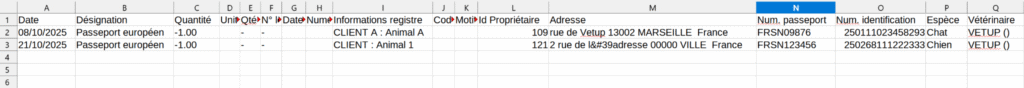 💡 Vous pouvez exporter ce registre au format CSV en cliquant sur Export CSV. Le numéro de passeport se trouve dans la colonne N du fichier exporté.