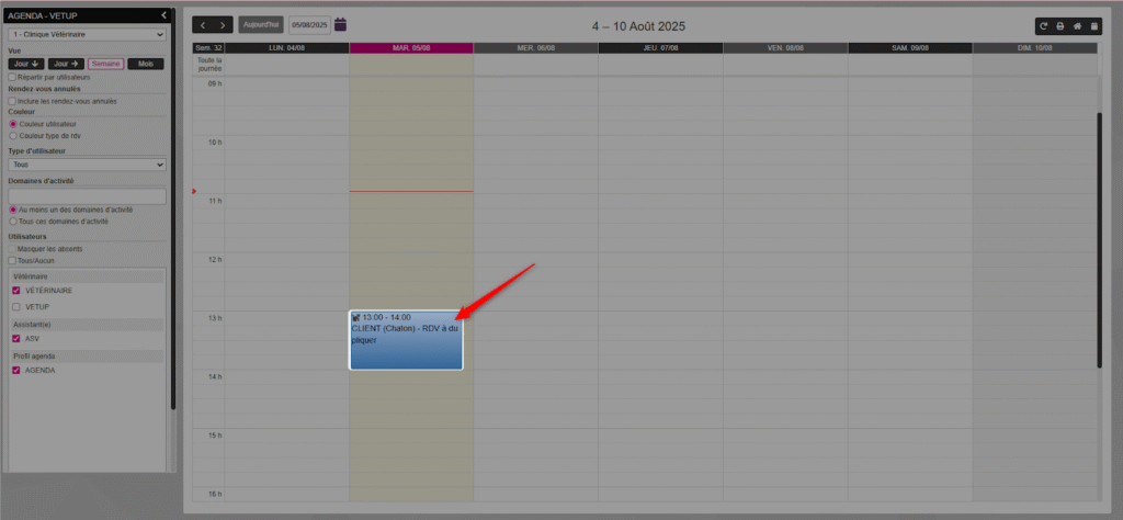Depuis l’agenda, cliquez sur le rendez-vous à dupliquer.