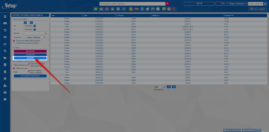 Après avoir effectué les paramétrages (👀  Voir tuto : Paramétrage des exports comptables), cliquez sur EXPORTER.