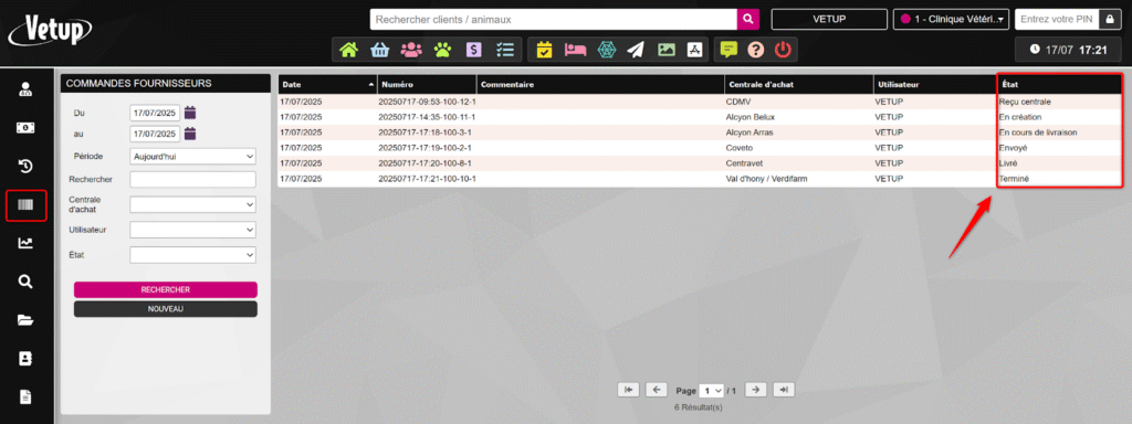 Dans ce tutoriel, nous allons décrire à quoi correspondent les différents états d’une commande fournisseur dans Vetup.