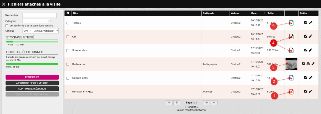 Vous pouvez attacher différents formats de fichiers, que ce soit à l’animal ou à une visite.