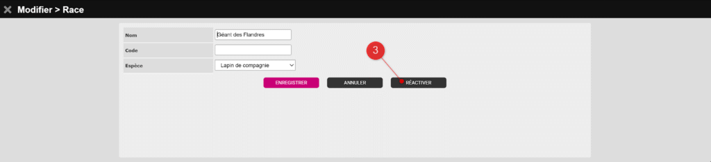 🔹Réactiver une race animale archivée