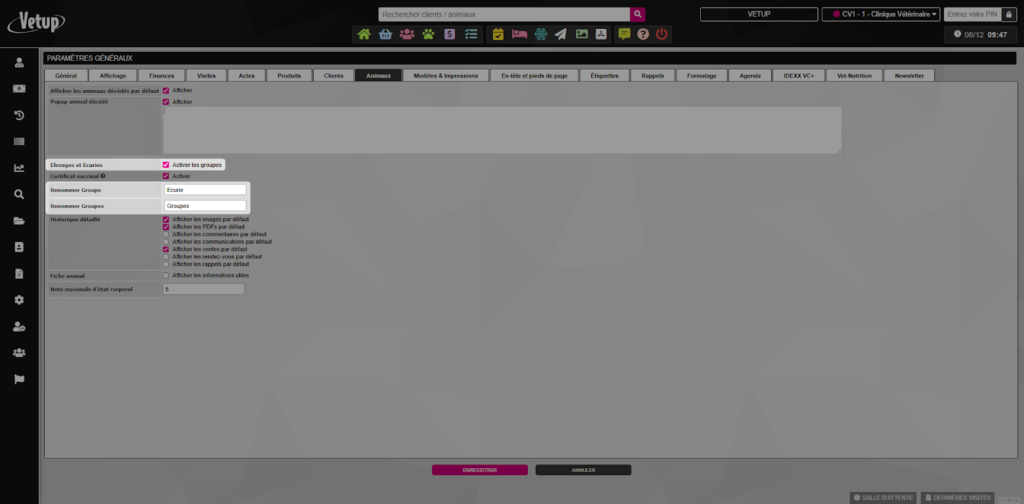 Pour cela, vous devez d’abord activer les groupes et les nommer depuis PARAMETRES > Paramètres généraux > Animaux.