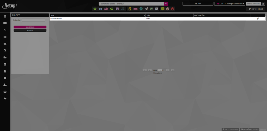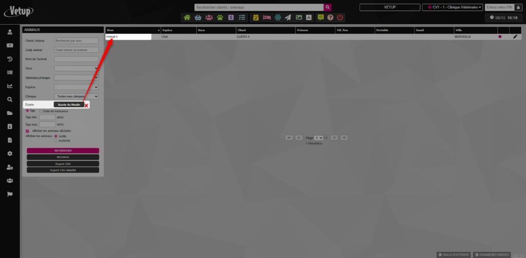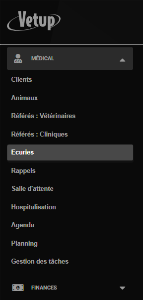 Depuis MEDICAL > Animaux, vous pouvez sélectionner le “Groupe”, “L’écurie” afin de ne visualiser que les animaux de ce groupe sur l’écran.