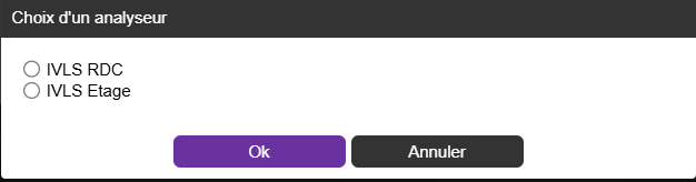 Sélectionnez l’appareil permettant de réaliser une analyse en interne (c’est-à-dire une analyse effectuée directement à la clinique à l’aide des analyseurs disponibles). Par défaut, un seul analyseur est présent.