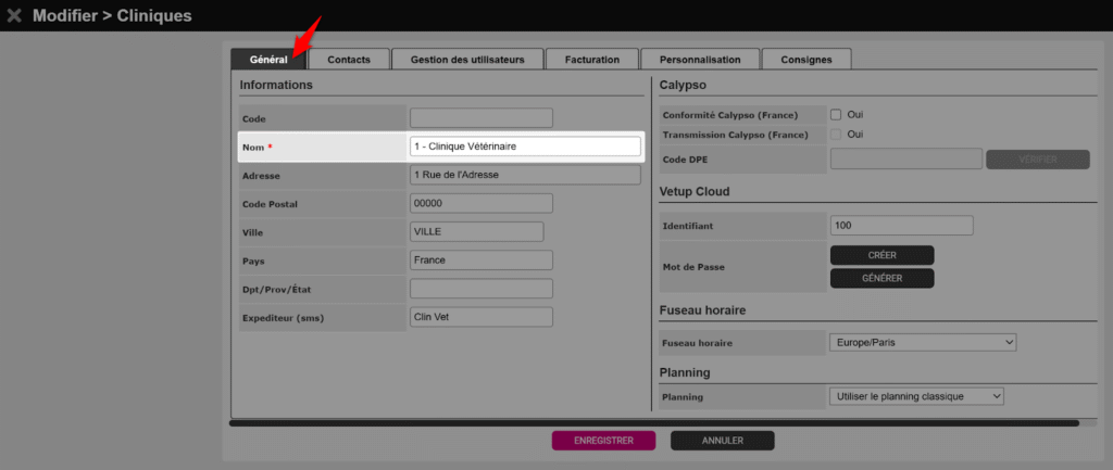 Il est possible de modifier le nom de votre clinique dans Vetup.