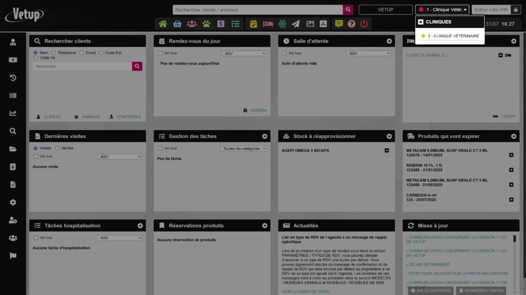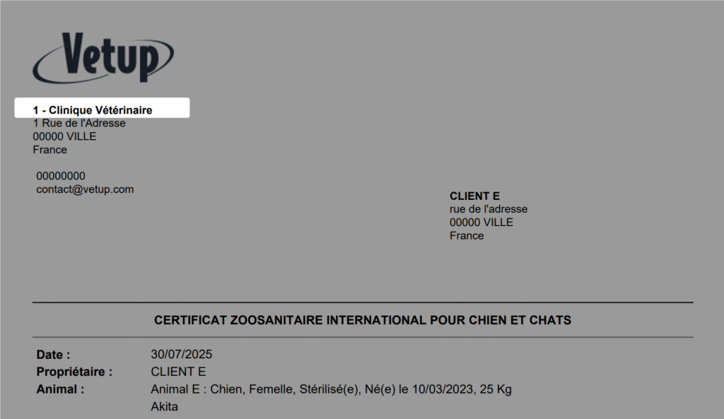 â Le nom apparaĂźt au sein du logiciel Vetup (par exemple en haut Ă droite de votre logiciel ou bien pour les cliniques traitantes des clients/animaux).