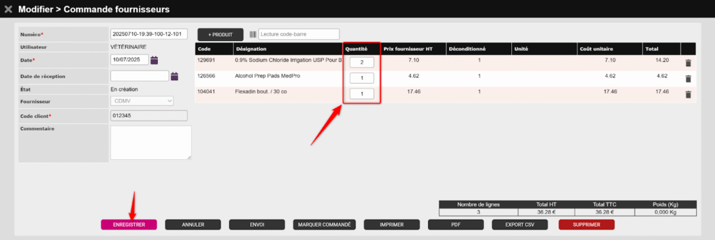 Sur votre portail CDMV, vous pouvez modifier votre commande. Les modifications seront prises en compte dans Vetup lors de la réception (sous réserve de l’utilisation du BLI associé).