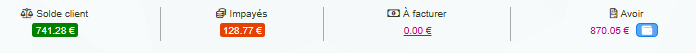 J’ai maintenant un crédit disponible de 870,05€, un impayé de 128,77€, et le solde à rembourser à mon client.