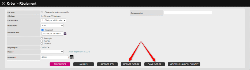 📌 Cette fonctionnalité n’est pas disponible avec les règlements d’acompte : en effet les acomptes ne génèrent pas de facture.