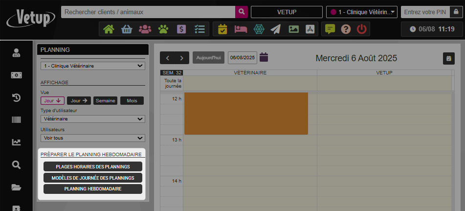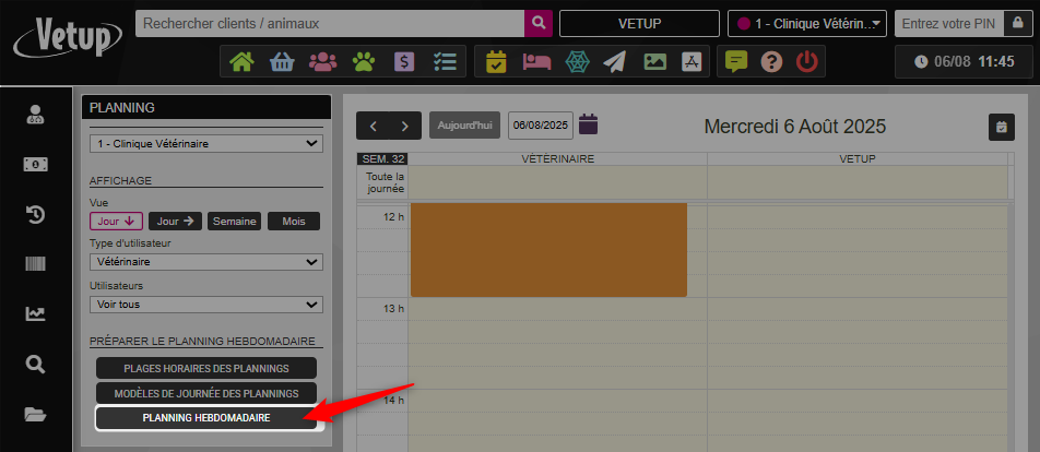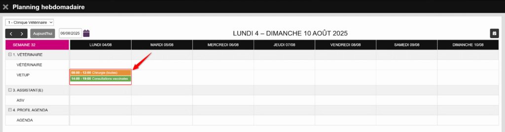 Cependant, il ne sera visible dans l’agenda que si vous activez le planning hebdomadaire pour votre clinique.