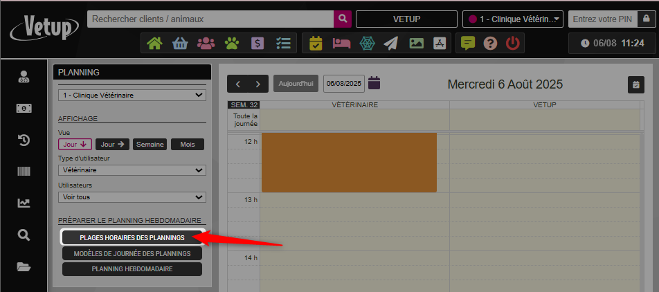 Par défaut, le planning journalier est paramétré pour chaque clinique.