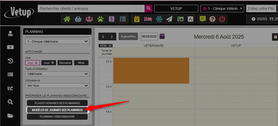 Cliquez sur MODÈLES DE JOURNÉE DES PLANNINGS.