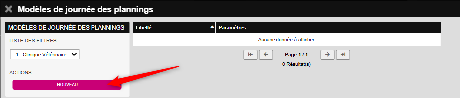 Depuis cette fenêtre, cliquez sur NOUVEAU pour créer un nouveau Modèle de journée.