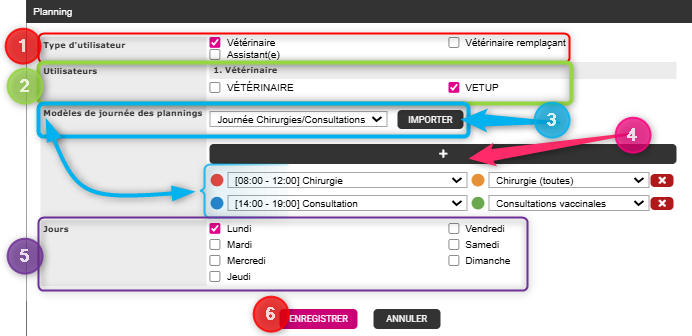 - Sélectionnez pour quel(s) Type(s) d’utilisateur vous souhaitez créer le planning.